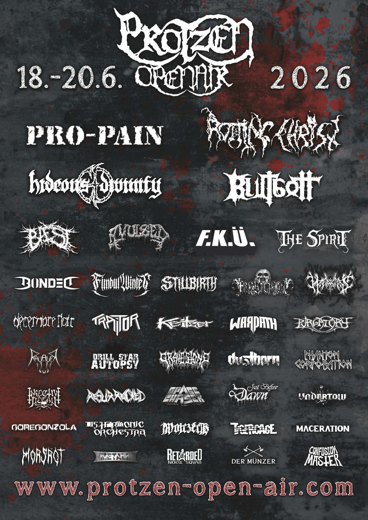 Death-Metal-Freunde haben die Wahl zwischen schwermütig-melodisch mit Just Before Dawn und Décembre Noir, wohlklingend z.B. mit The Spirit oder Baest und natürlich der Mitten-ins-Gesicht-Variante mit Facebreaker, Purgatory oder Avulsed. Nicht zu vergessen die italienischen Brutal-Deather Hideous Divinity, die durchaus in der Lage sind, für einige atmosphärische Verschnaufpausen zu sorgen. Eine Reise mit Blutgott durch das Fantasy-Universum von Debauchery, Blood God und Balgeroth gehört definitiv zu einem der visuellen Highlights des Wochenendes, sowie das unaufhaltsame Ausrasten bei Pro-Pain, die mit ihrem neuen Album „Stone Cold Anger“ im Gepäck viel Staub aufwirbeln werden. Weitere sensationelle Combos aus fern und nah präsentieren sich abwechselnd zwischen Mainstage und Hangar.