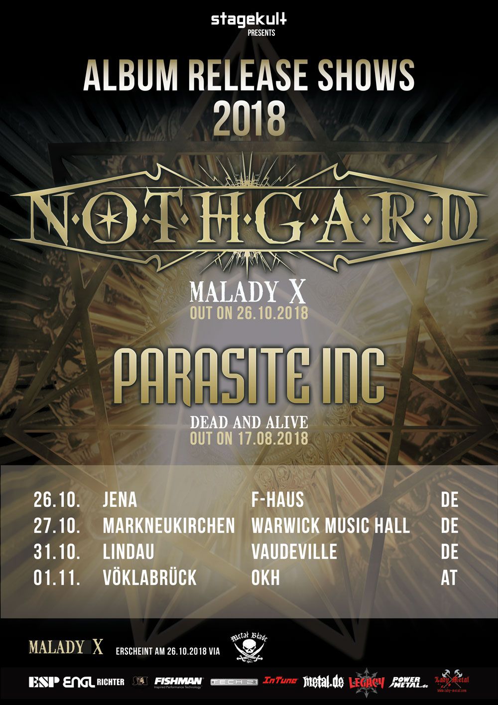 Und selbstverständlich haben wir auch einige Release-Shows für euch auf die Beine gestellt, um “MALADY X” entsprechend zu feiern. Gemeinsam mit unseren Freunden von Parasite Inc., die ihr neues Album “Dead and Alive” am 17.08.2018 veröffentlichen, werden die Bühnen ordentlich zum beben bringen.”