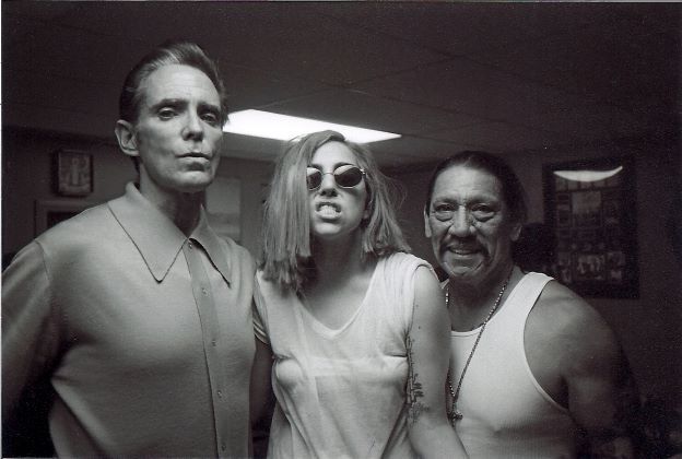 Foto: Mark Mahoney (l) mit Musikerin Lady Gaga und Schauspieler Danny Trejo; Photo Credit: courtesy of the artist