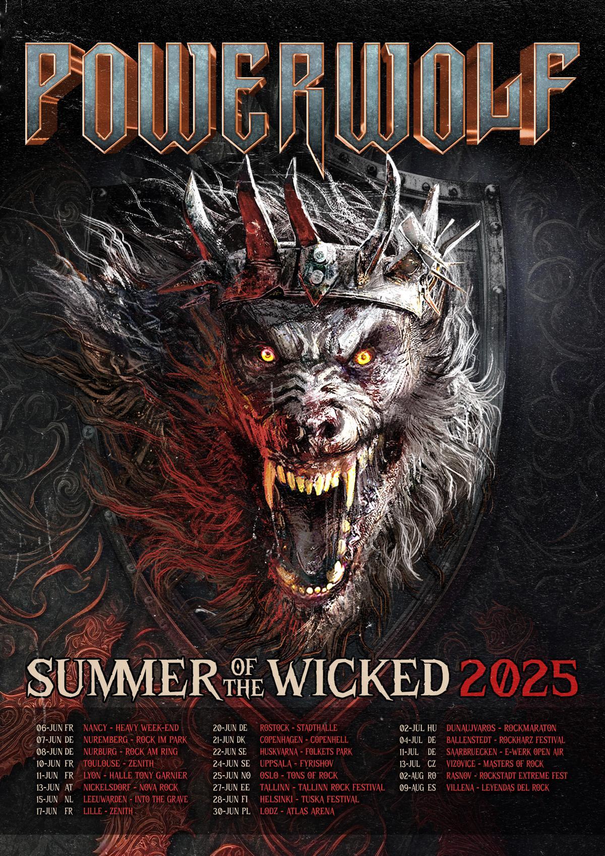 Die „Summer Of The Wicked“-Tour 2025 wird POWERWOLF als Headliner durch ganz Europa führen, darunter auch fünf große Shows in Deutschland: