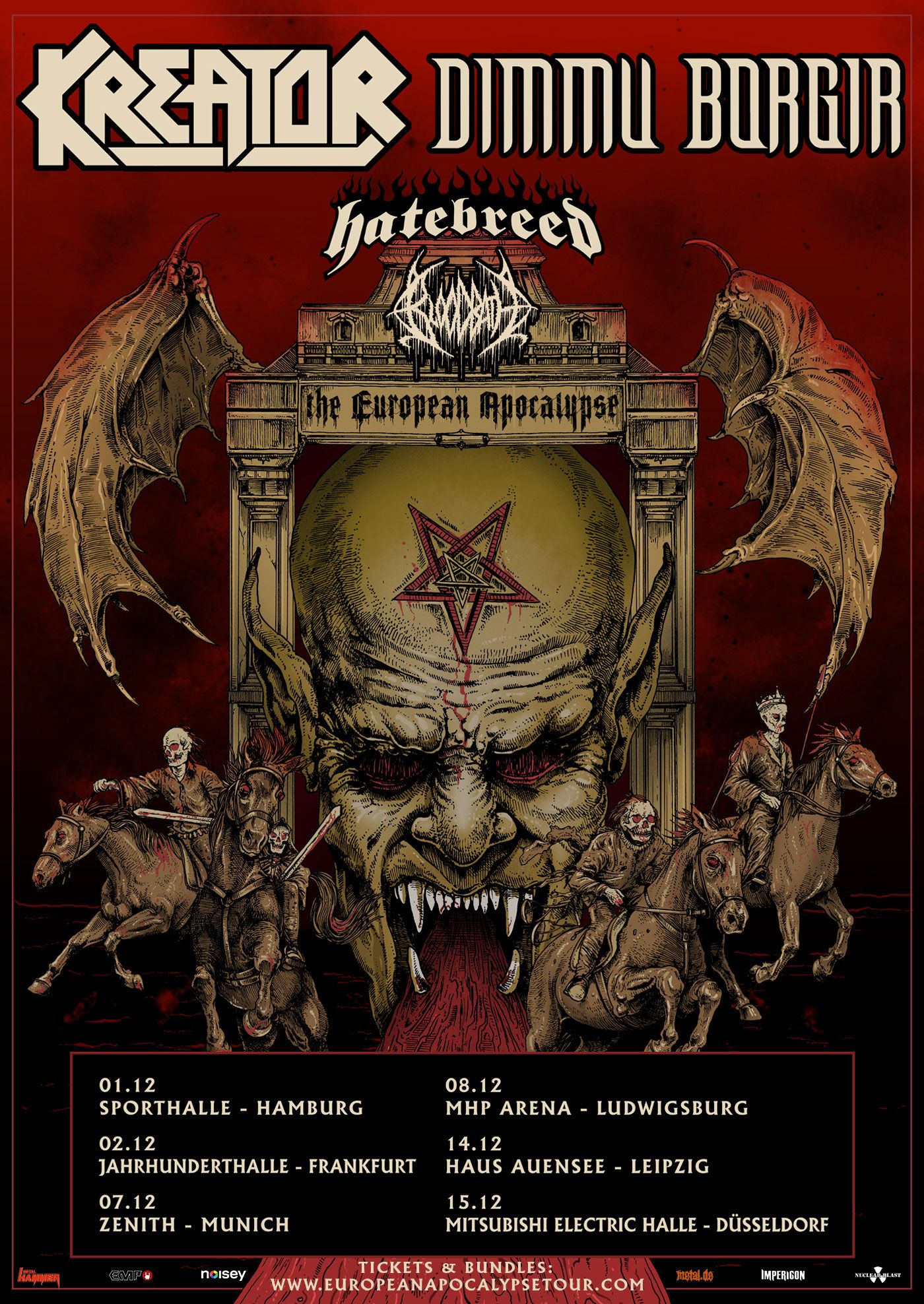 Tickets und Bundles für alle Konzerte gibt es ab 13. Juni, 11:00 MESZ auf http://europeanapocalypsetour.com.