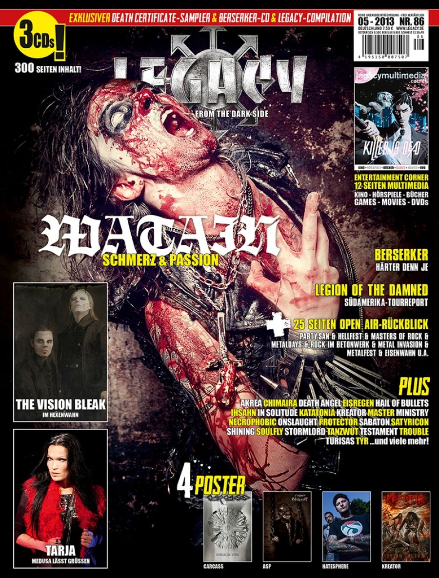 Enthält Interviews mit WATAIN (Titelstory), KREATOR, AKREA, ANATHEMA, ARGUS, ATLANTEAN KODEX, BEATEN TO DEATH, CHIMARA, CONCRETE ICON, CRYPTIC FOREST, DARK AGE, DEATH ANGEL, DEGRADEAD, DIAMOND PLATE, EISREGEN, EPICA, EREB ALTOR, FLESHGOD APOCALPYSE, GOREGAST, GORGUTS, GORTHAUR’S WRATH, GRABNEBELFÜRSTEN, GRIS, HAIL OF BULLETS, HATESPSHERE, IHSAHN, IN SOLITUDE, IZEGRIM, KATATONIA, KILL DIVISION, KIMAERA, MASTER, MAEL MORDHA, MINISTRY, ONSLAUGHT, PROTECTOR, REVAMP, RIVERS OF NIHIL, SABATON, SARKOM, SATYRICON, SHINING, SLEGEST, SPIRAL ARMS, SOULFLY, STORMLORD, TANZWUT, TARJA, TESTAMENT, THE VISION BLEAK, TROUBLE, TURISAS, TWILIGHT OF THE GODS, TÝR, ULCERATE, UNSHINE, WITHERSCAPE, WOLVSERPENT, WOUND, WRAITHCULT und vielen mehr!