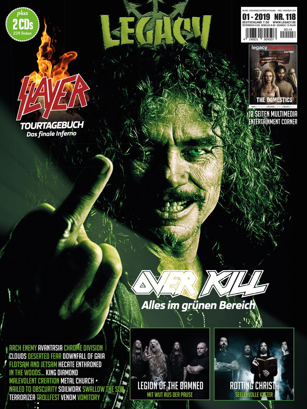 Ein giftgrünes Cover, eine New Yorker Ikone mit ausgestrecktem Mittelfinger: Das kann nach dem Ableben von Pete Steele nur Overkill-Frontmann und Frohnatur Bobby „Blitz“ Ellsworth sein. Die Thrash-Veteranen knüpfen mit ihrem 19. Album an den Vitalisierungsschub „Ironbound“ an. Mit den Co-Titel-Storys wurden ebenfalls altgediente Recken bedacht: Rotting Christ prägen seit drei Dekaden die hellenische Variante des Black Metal, Legion Of The Damned führen die Tradition von Occult fort und sind somit beinahe ebenso lange am Start. Mit ihrem brachialen Thrash hätten sie sich sicher auch gut im Vorprogramm der Slayer-Abschiedstour gemacht. Auch ohne Platz im Tour-Bus ließen wir uns ein Tour-Tagebuch über vier Deutschland-Dates nicht nehmen.