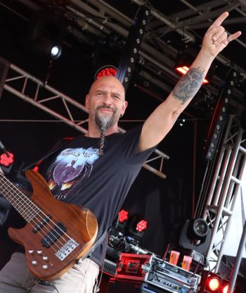 Mit den schwedischen Death-Thrash-Großmeistern DEFLESHED verabreden wir uns nach deren Killer-Show. Die gut gelaunte Band ist sichtlich zufrieden mit Show und Zuspruch des Publikums. Übergeben wird ein Gitarren-Plektron mit Aufschrift „NO Fucking So…