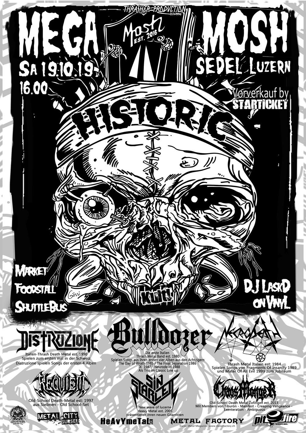 Am kommenden Samstag beehren BULLDOZER (IT) den Sedel und spielen ein spezielles Set mit Songs von ihren ersten vier Alben, die allesamt in den 80ern erschienen sind. NECRODEATH und DISTRUZIONE komplettieren die italienische Front. Doch auch für eine würdige Schweizer Vertretung ist an diesem Abend gesorgt. REQUIEM, SIN STARLETT und CHAOSMONGER heizen dem Publikum bereits ab 16.30 Uhr ordentlich ein. Die legendäre Moped Bar und der Metalmarkt werden auch neben der Bühne für gute Unterhaltung sorgen. Für sehr faire 25.- CHF (VVK, ca. 22 Euro) ist man bei dieser Sause dabei. Shuttlebusse fahren ab Türöffnung alle halbe Stunde von der Innenstadt zum Musikzentrum Sedel – den genauen Fahrplan entnimmt man der offiziellen Homepage. Einige Parkplätze sind direkt an der Location vorhanden.